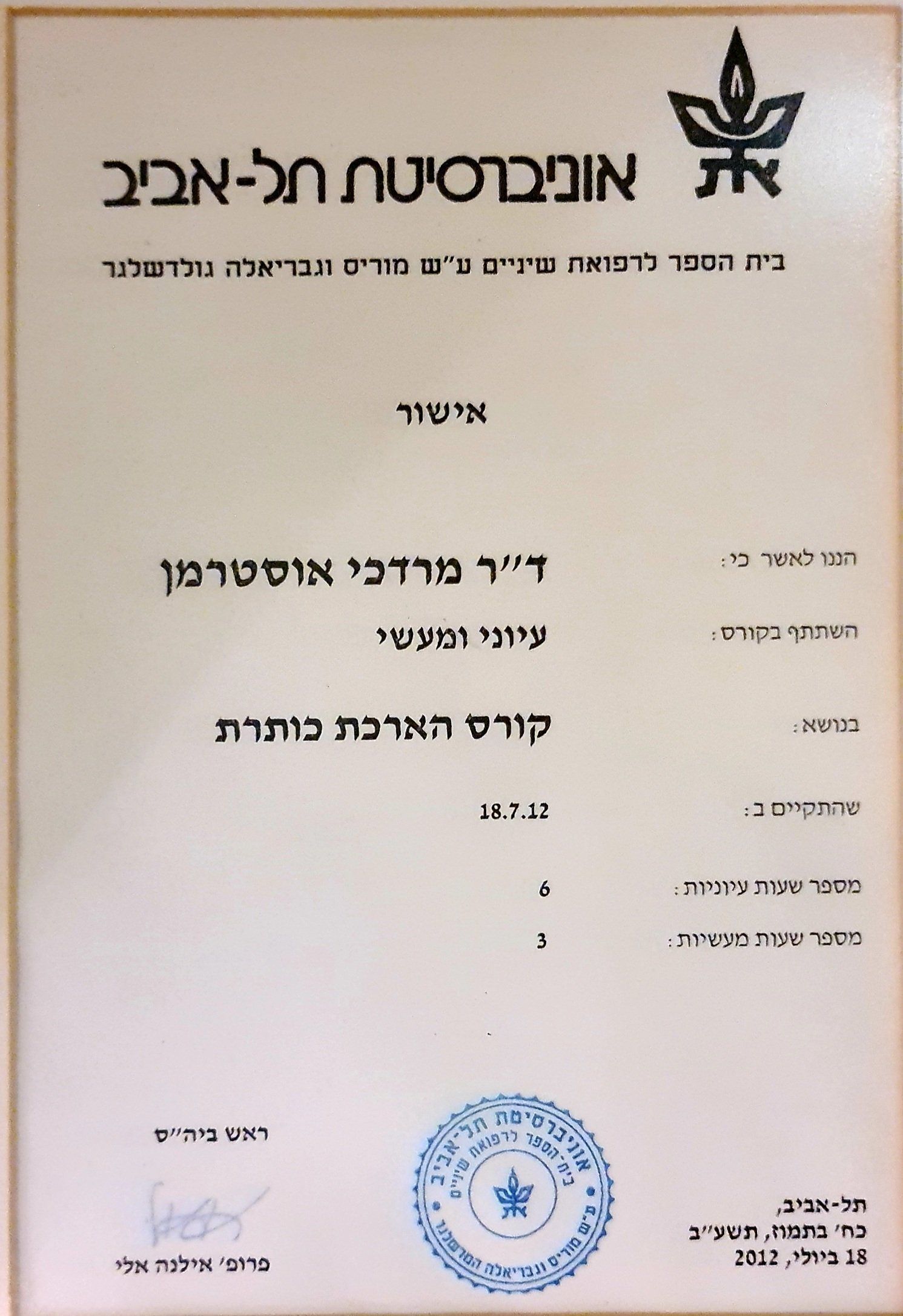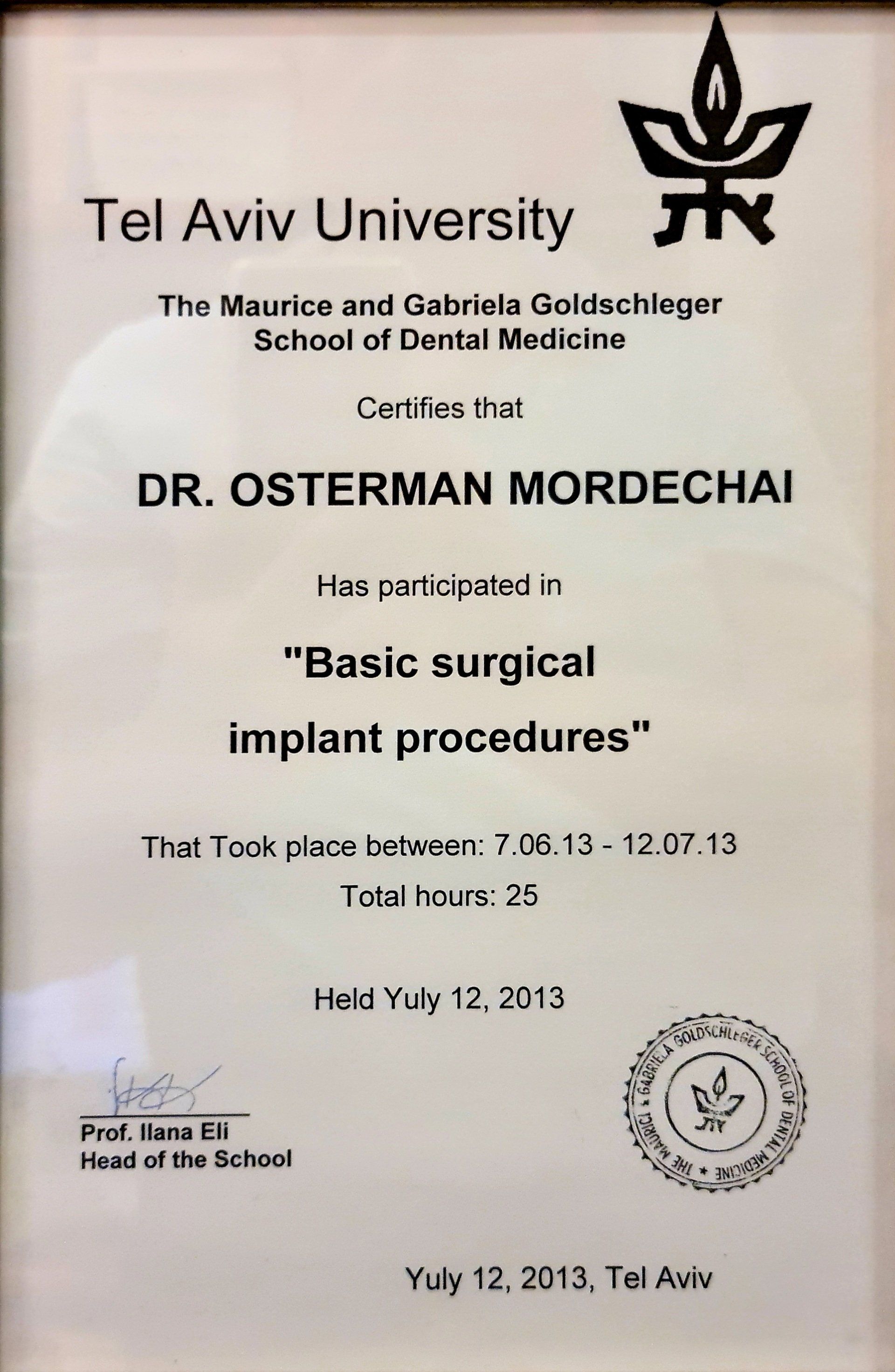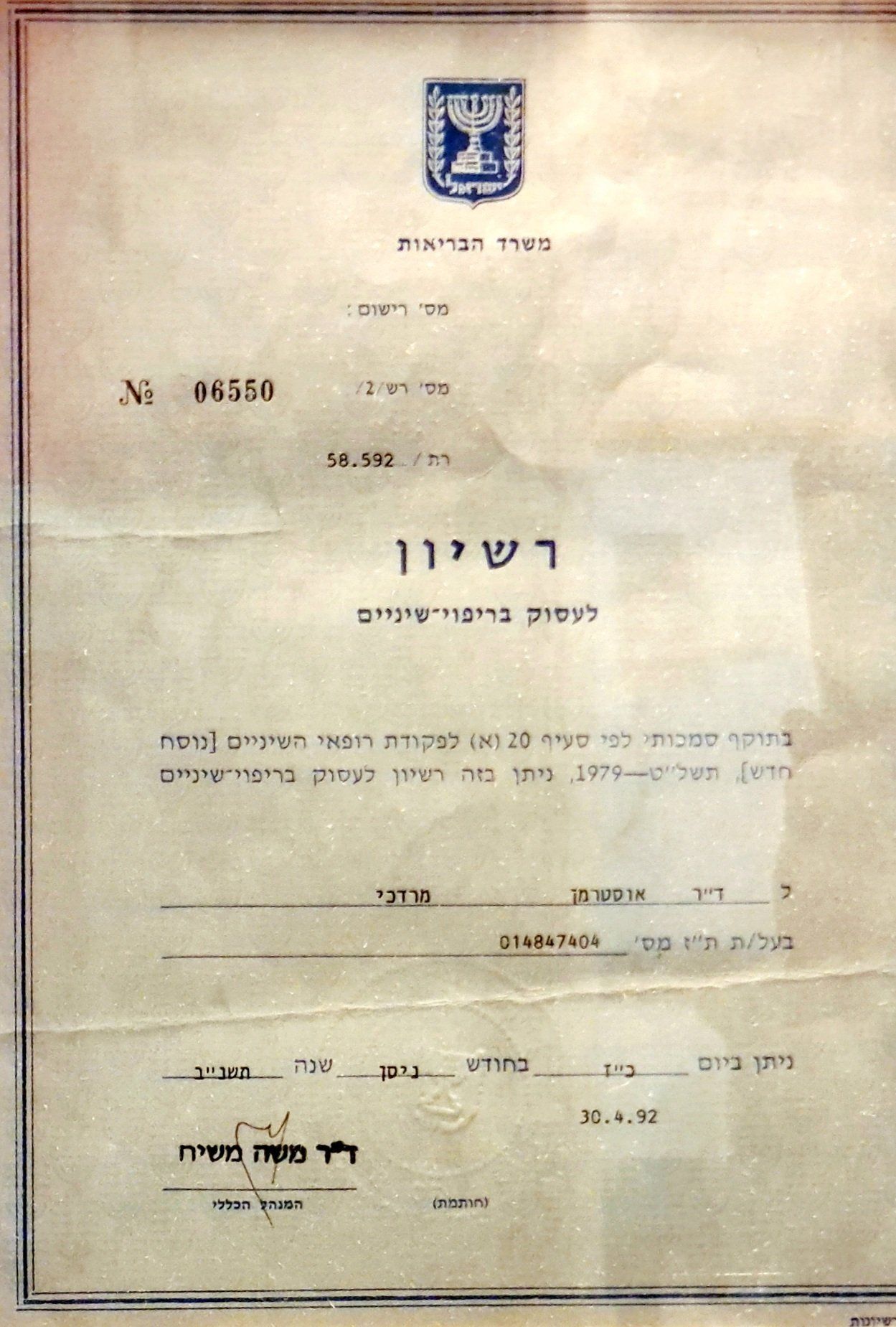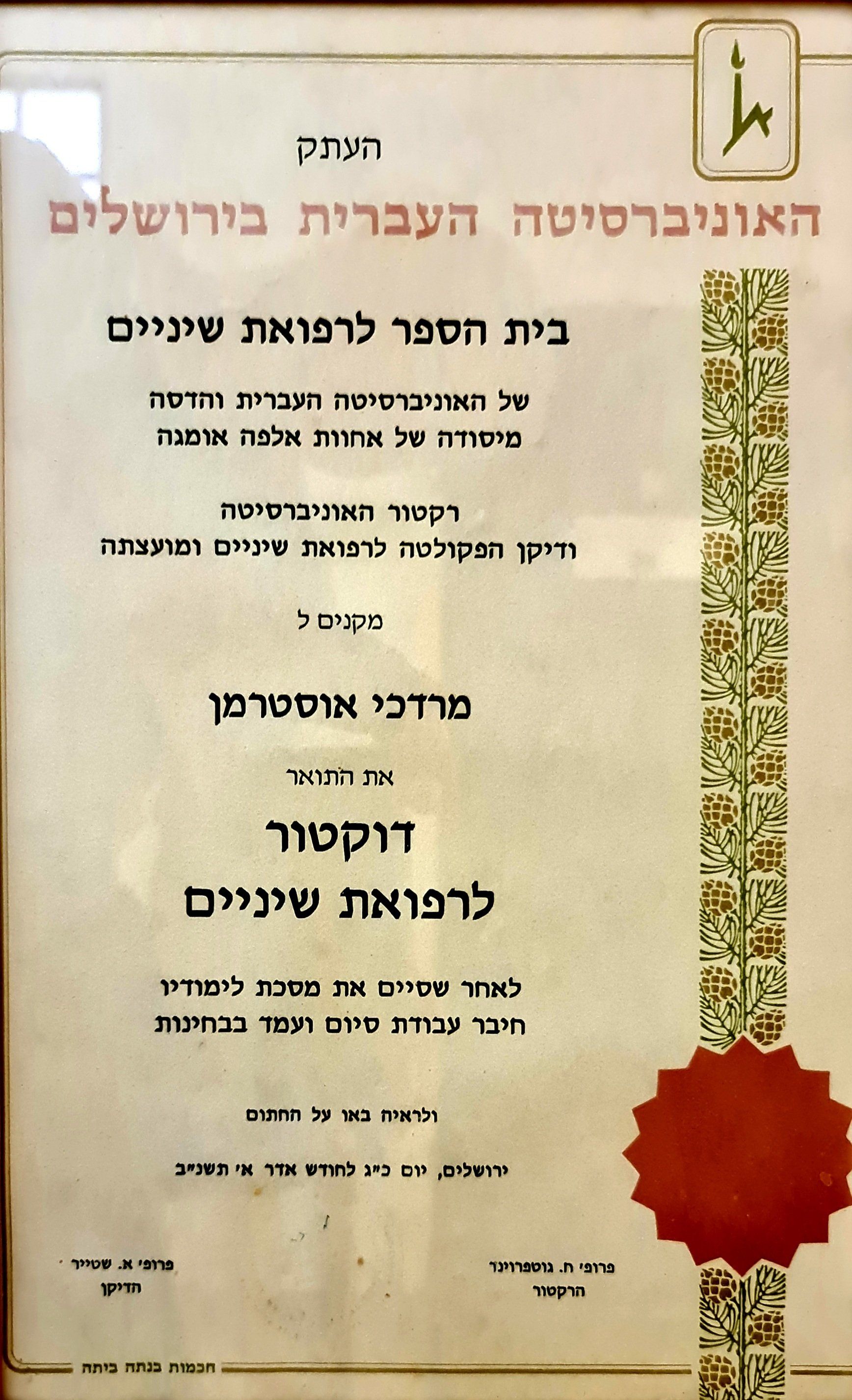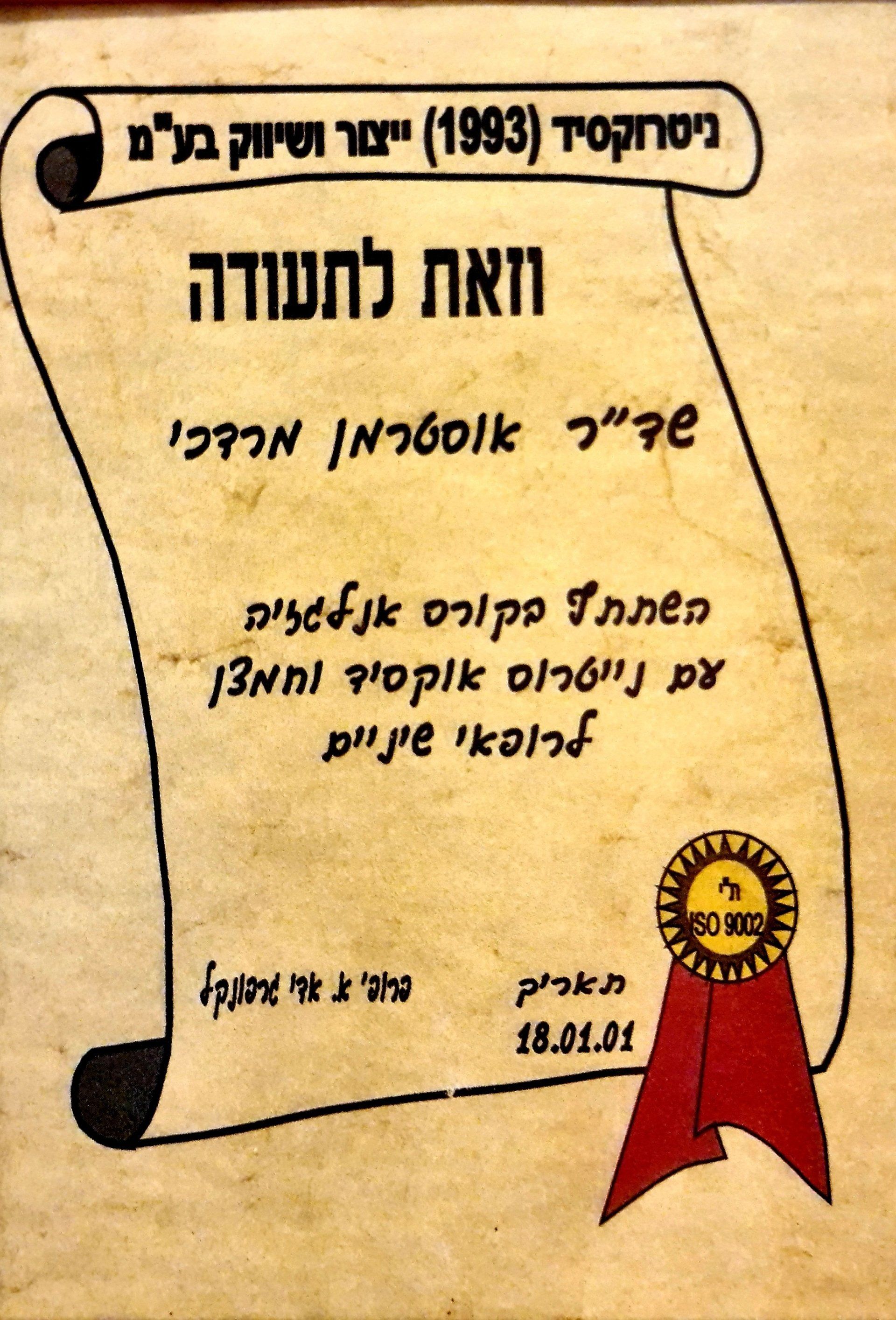 • ד"ר אוסטרמן בוגר השתלמות ייחודית ברפואת שיניים למתרפא המבוגר – גרודונטולוגיה .