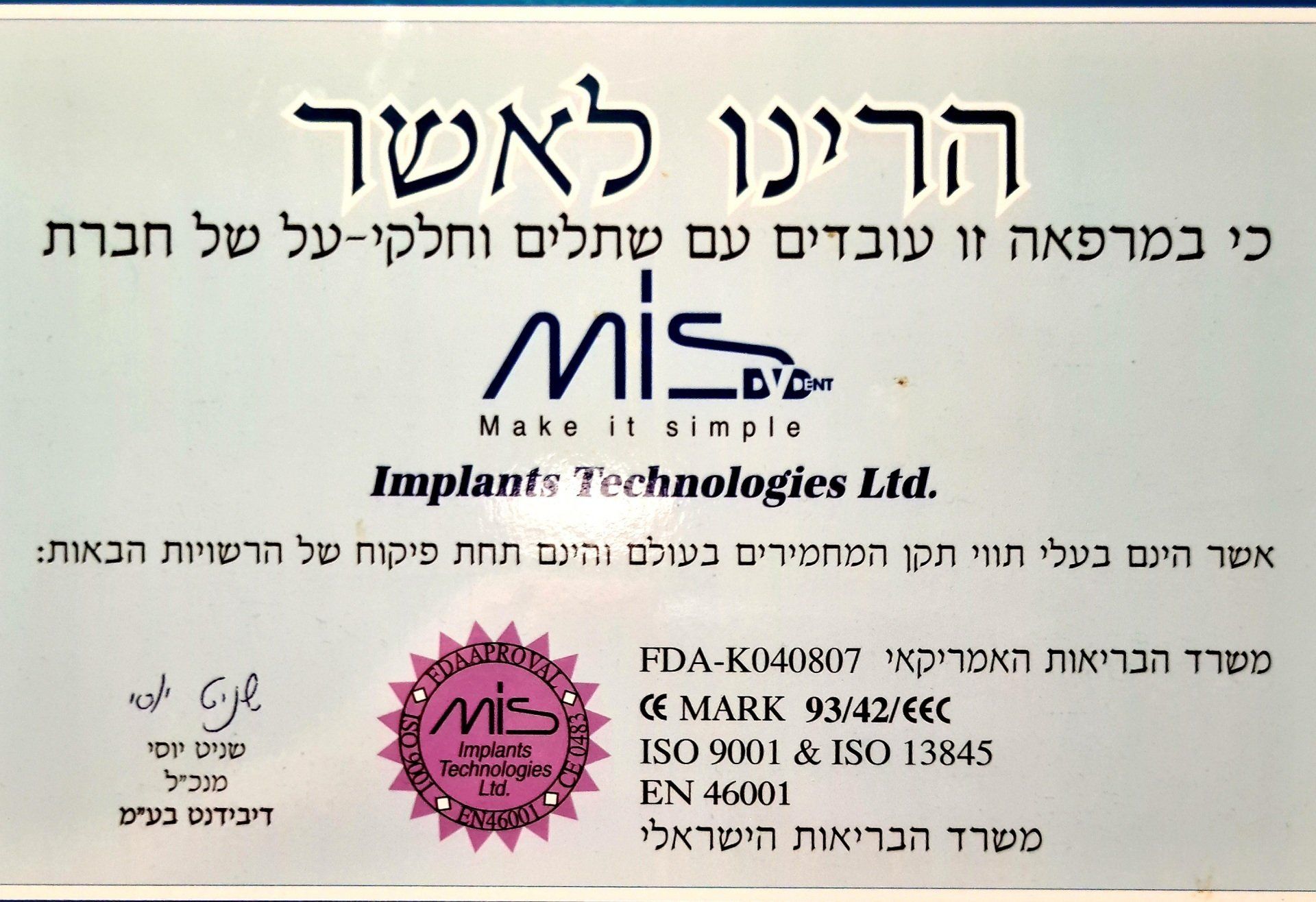 בעל ניסיון עשיר בביצוע שתלים דנטאליים מורכבים .