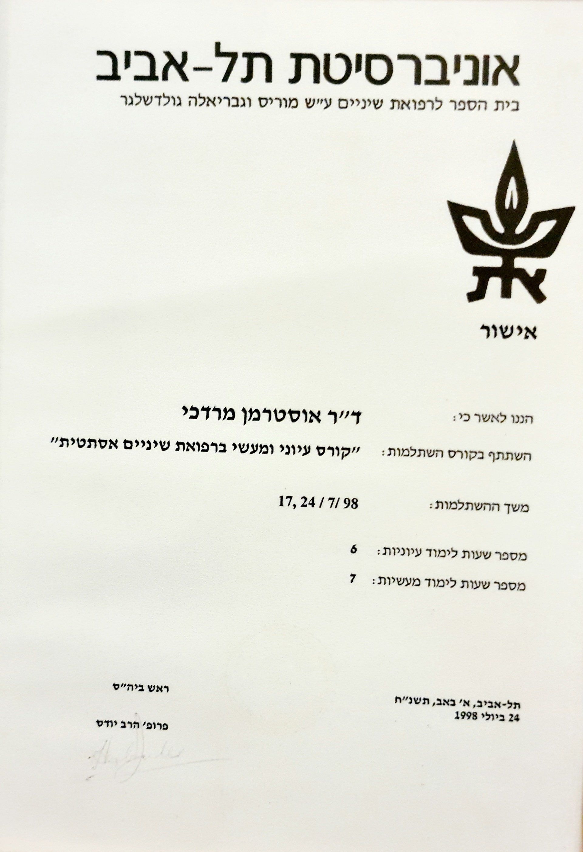 גרונטולוגיה (רפואת שיניים למתרפא המבוגר) מטעם האוניברסיטה העברית .